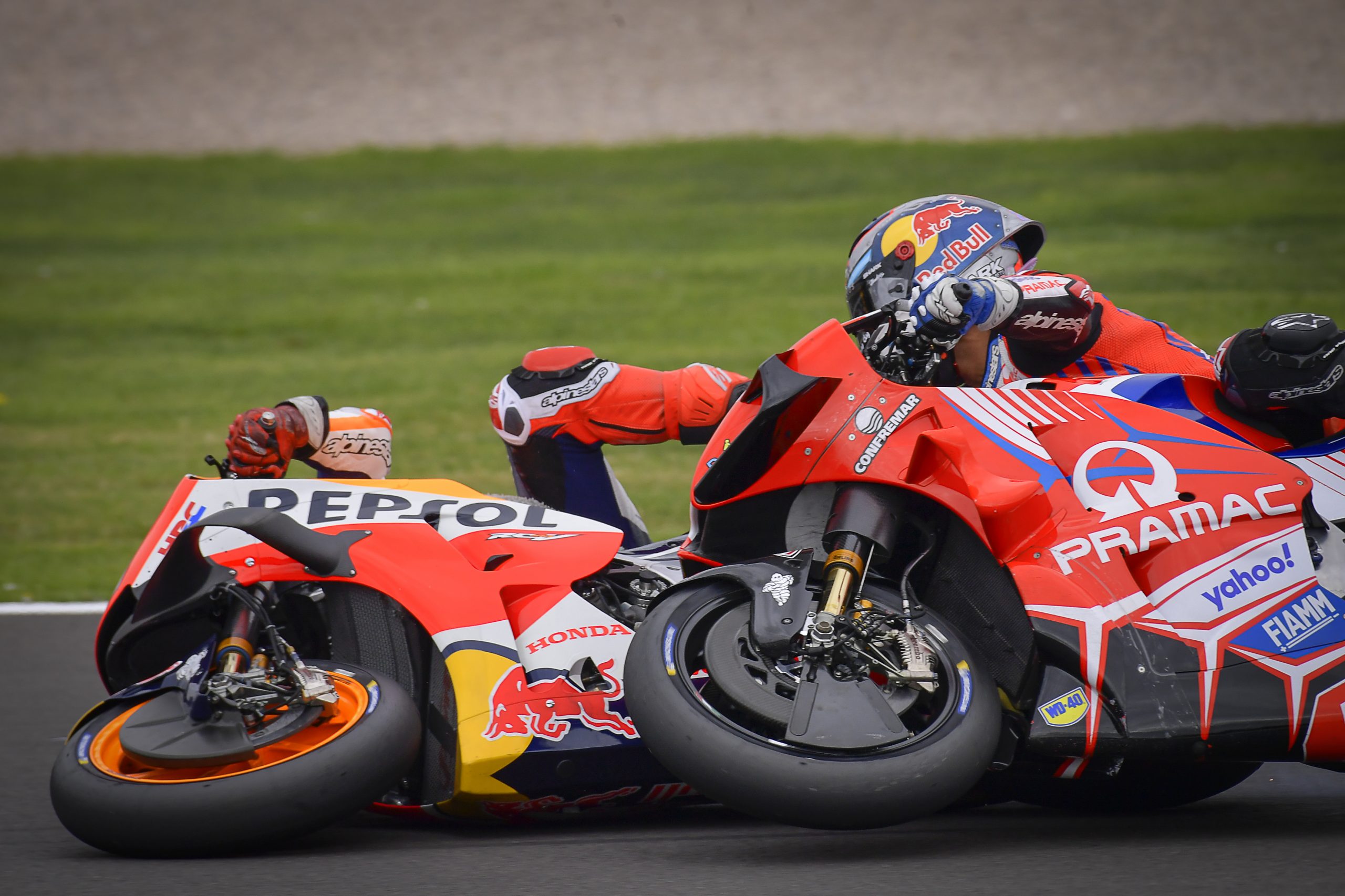 Il Cabroncito si assume le proprie responsabilità e si è andato a scusare di persona con il connazionale del team Pramac Racing. “È la prima cosa che ho fatto quando la gara della MotoGP è finita. Sono andato prima a scusarmi con la sua squadra, ma non l’ho trovato e sono andato a cercarlo nella hospitality dove stava mangiando. Mi sono seduto con lui per un po’, mi sono scusato e gli ho detto che era stato completamente un mio errore. Mi dispiace, perché sia io che lui avevamo il ritmo per lottare per il podio, ma oggi è andata così”.